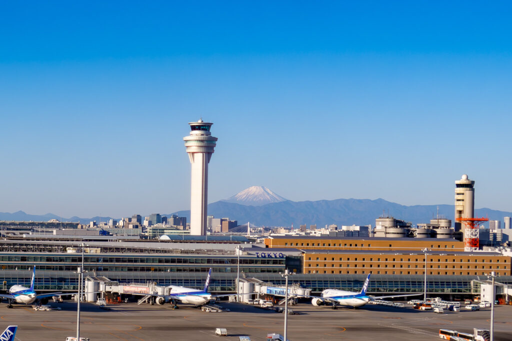 羽田空港C滑走路からの離陸~管制塔と富士山~