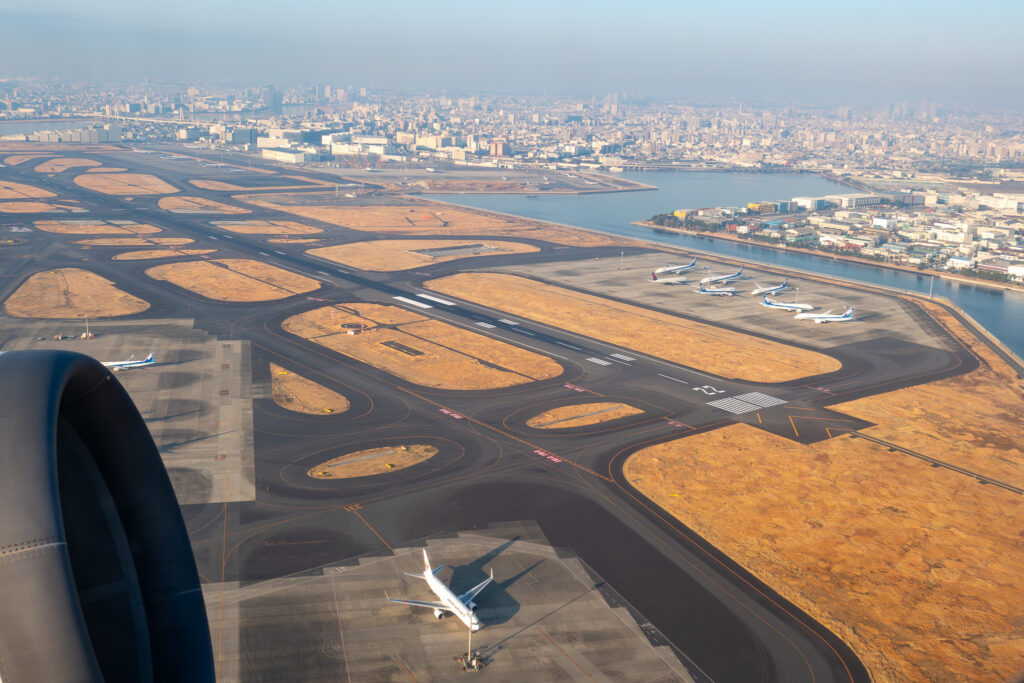羽田空港C滑走路からの離陸。B滑走路の横を上昇中