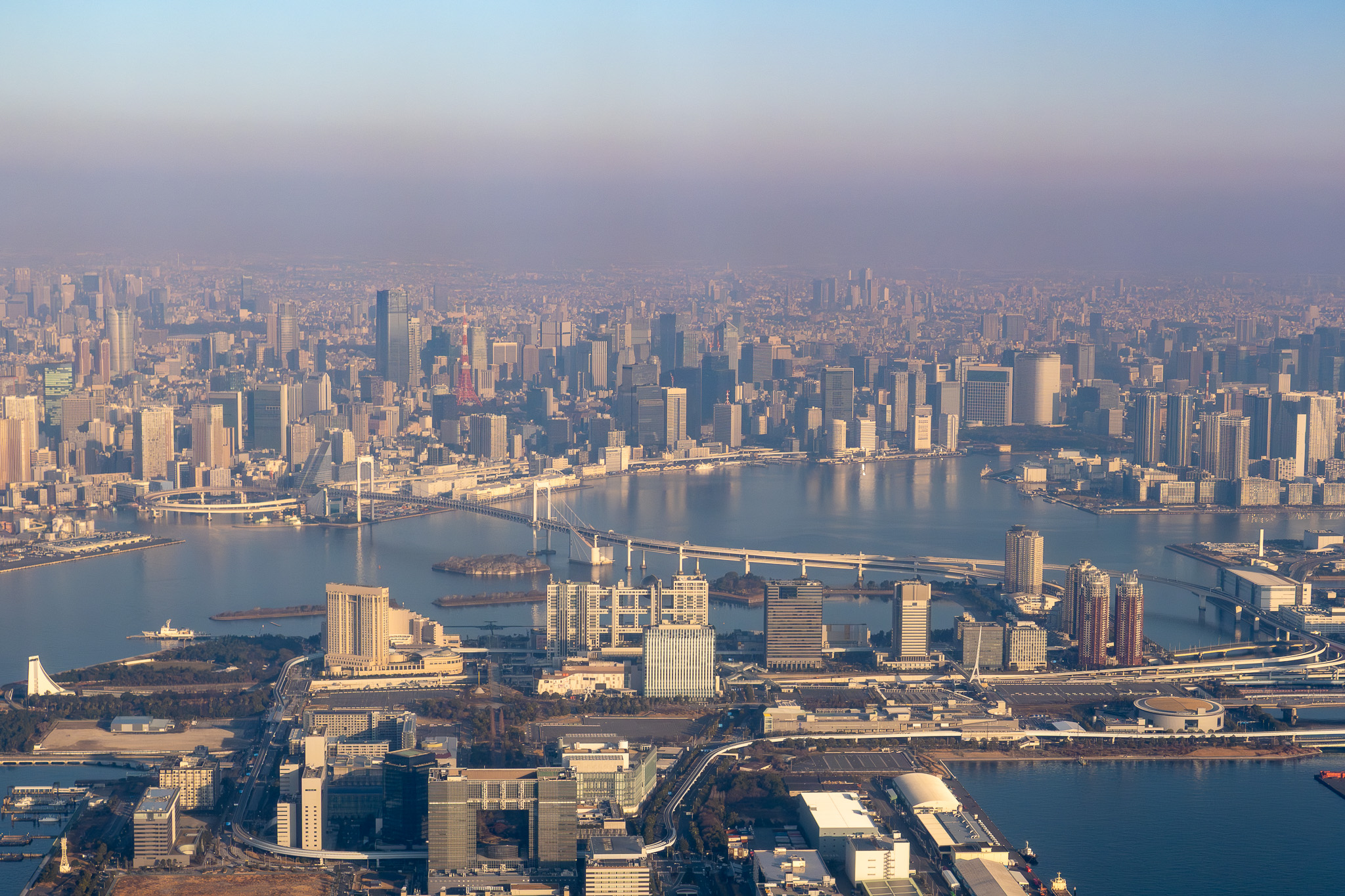 JAL565 羽田⇒女満別 羽田空港を離陸して都心部をかすめて上昇。