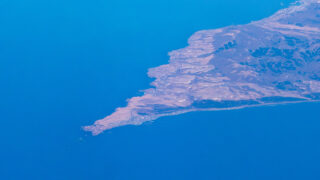 八戸付近まで本州上空を飛び太平洋へ。そして、再度見える陸地は北海道・襟裳岬!
