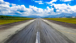 機窓 熊本空港離陸前の滑走路